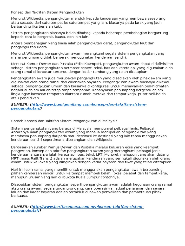 Contoh Konsep Dan Takrifan Sistem Pengangkutan