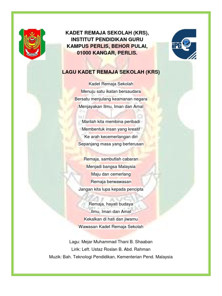 You can download in. The Kadet Remaja Sekolah logo is a education logo made up of around 5 different colors. Perisai melambangkan benteng ketahanan diri daripada gejala yang tidak sihat.